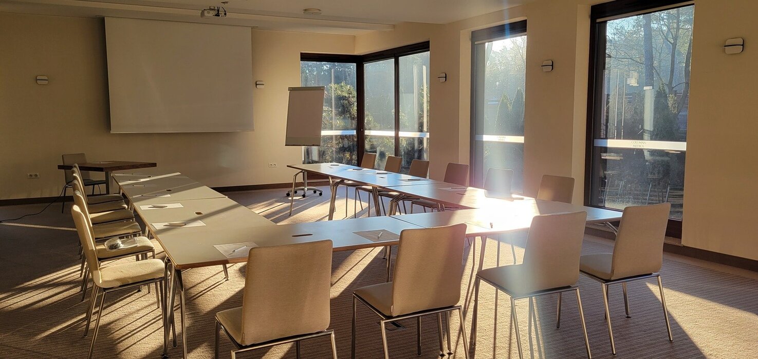 Wyposażenie sali: flipchart z mazakami, rzutnik, ekran, kartki, długopisy, klimatyzacja, WiFi, dostęp do światła dziennego